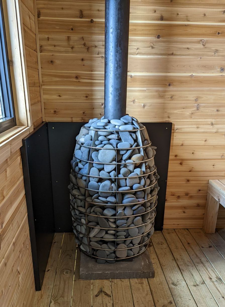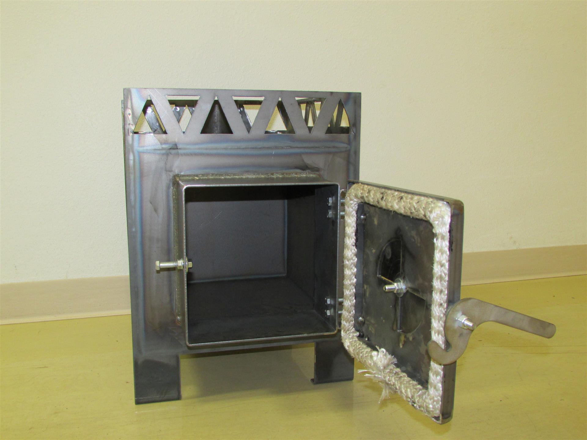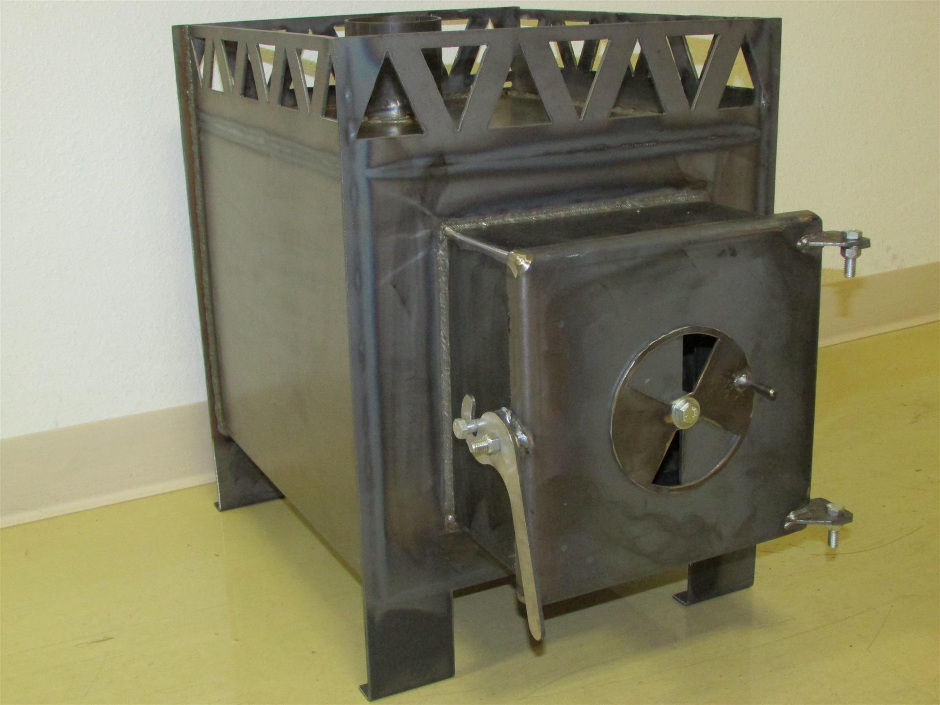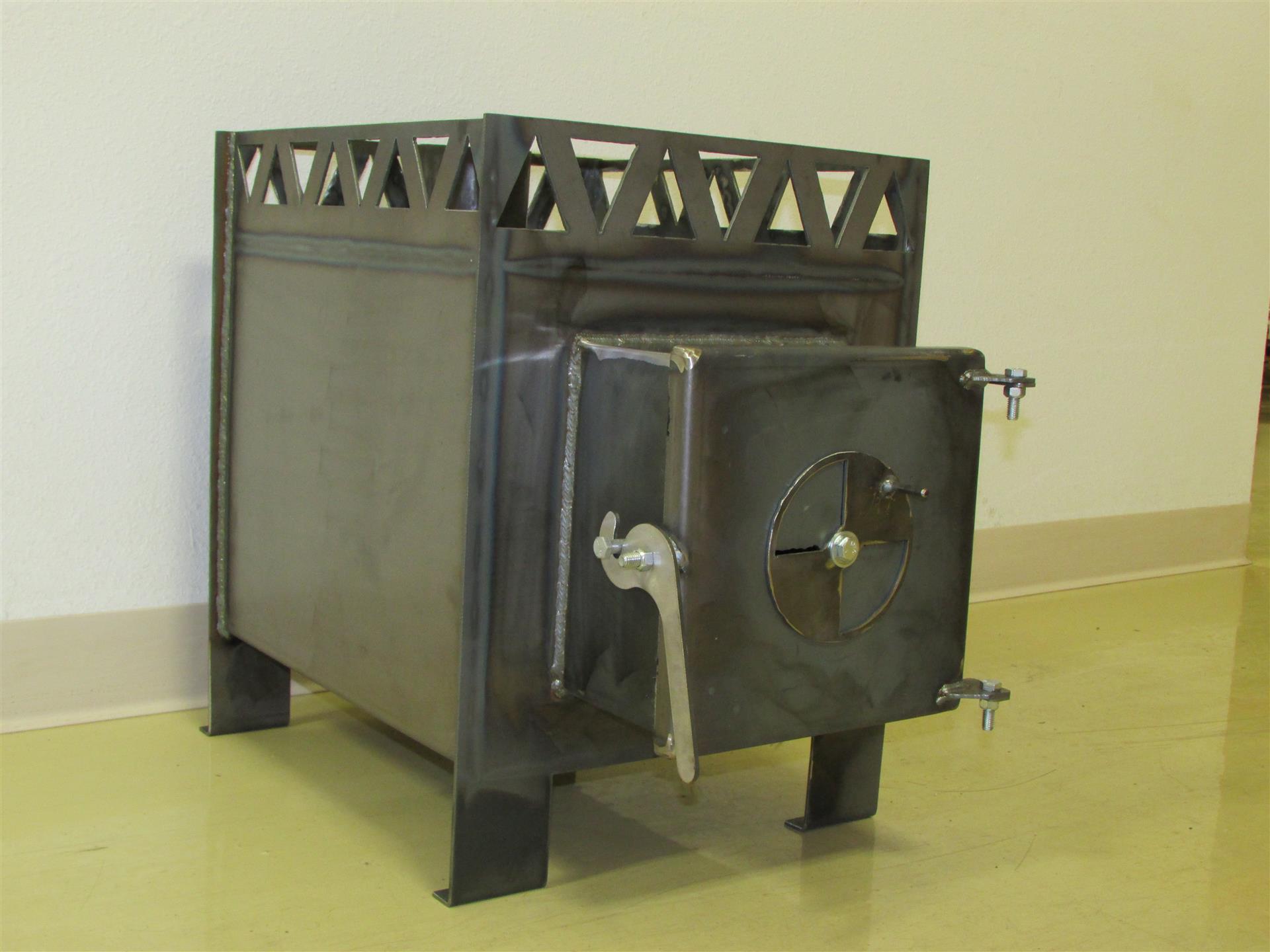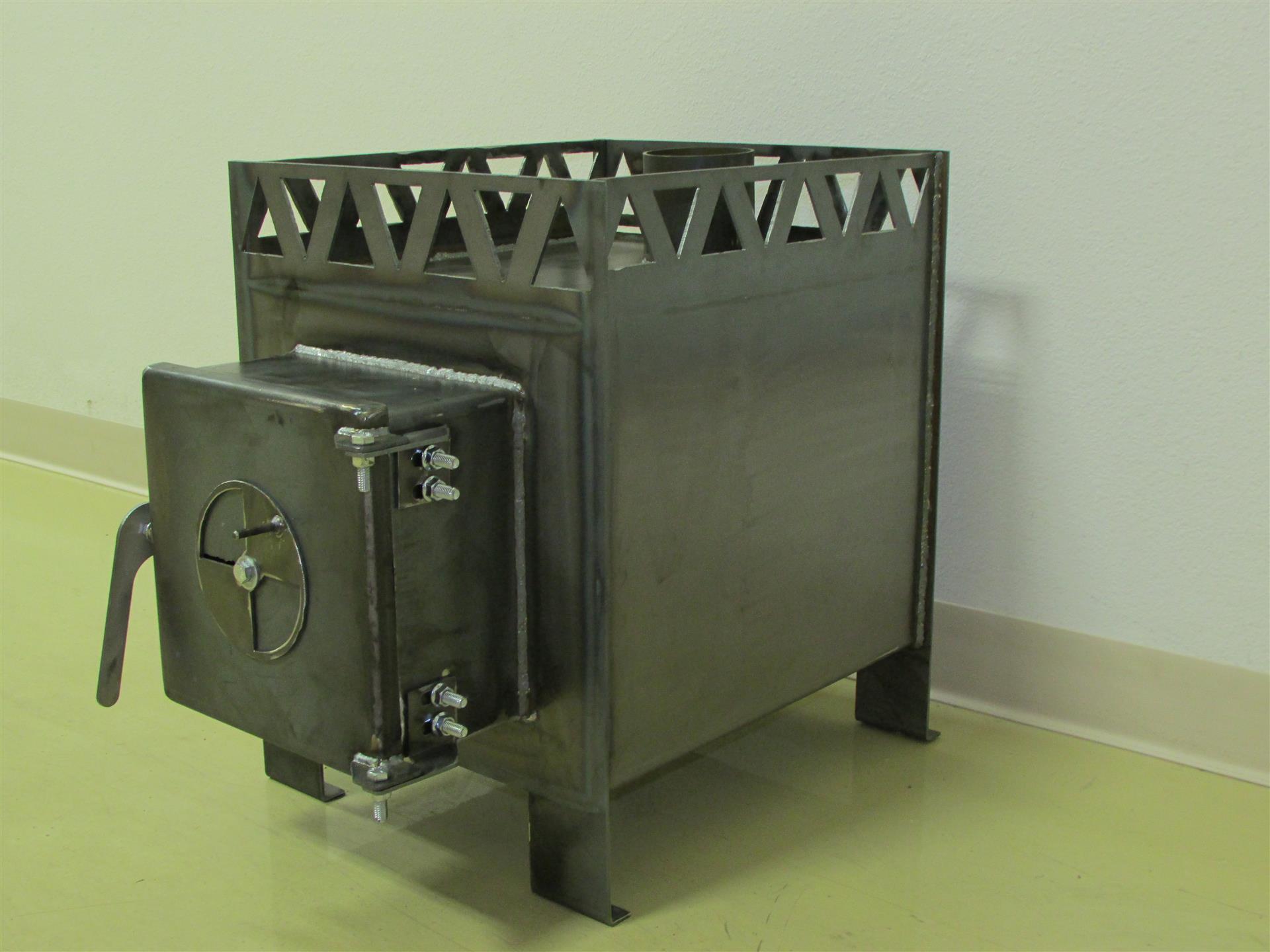 Custom built wood sauna stoves to customers specifications and design. Wood fired sauna stoves can be built with basket on top to hold rocks, which heat up and store heat that can be released after the fire has burned down.