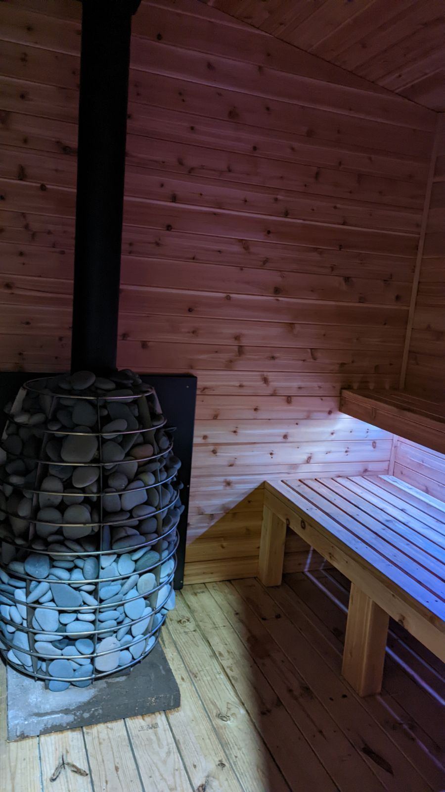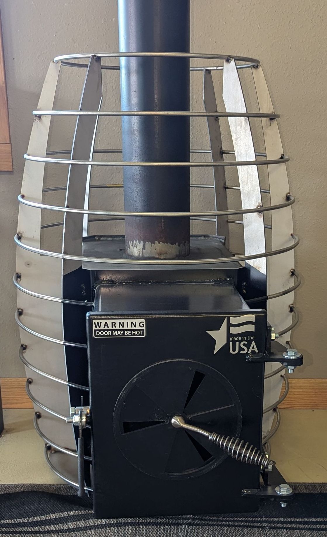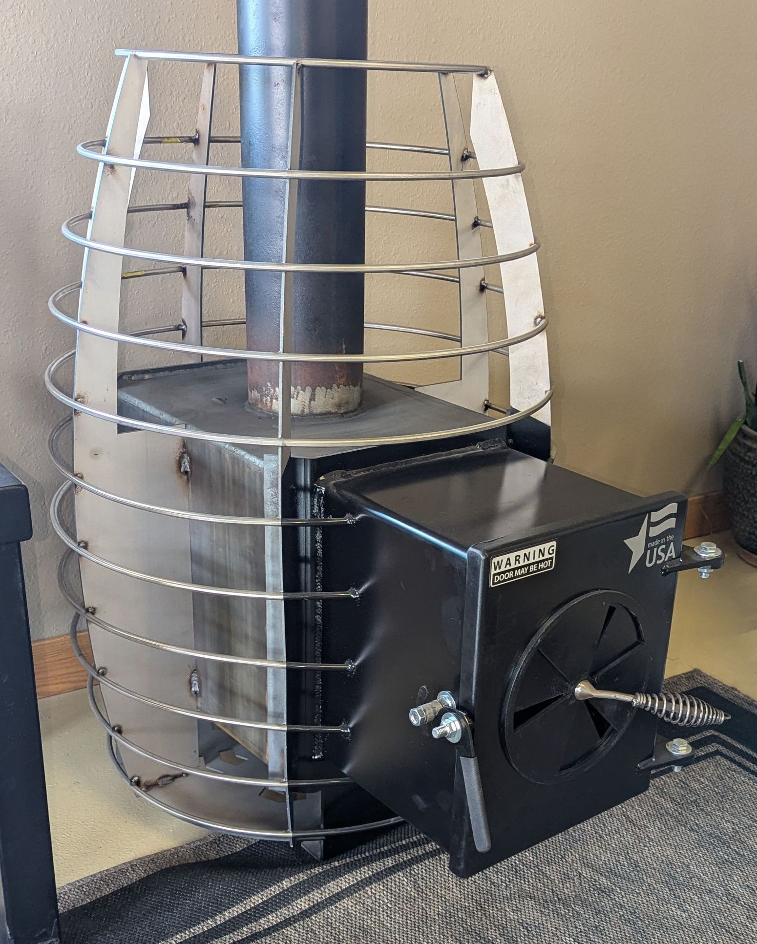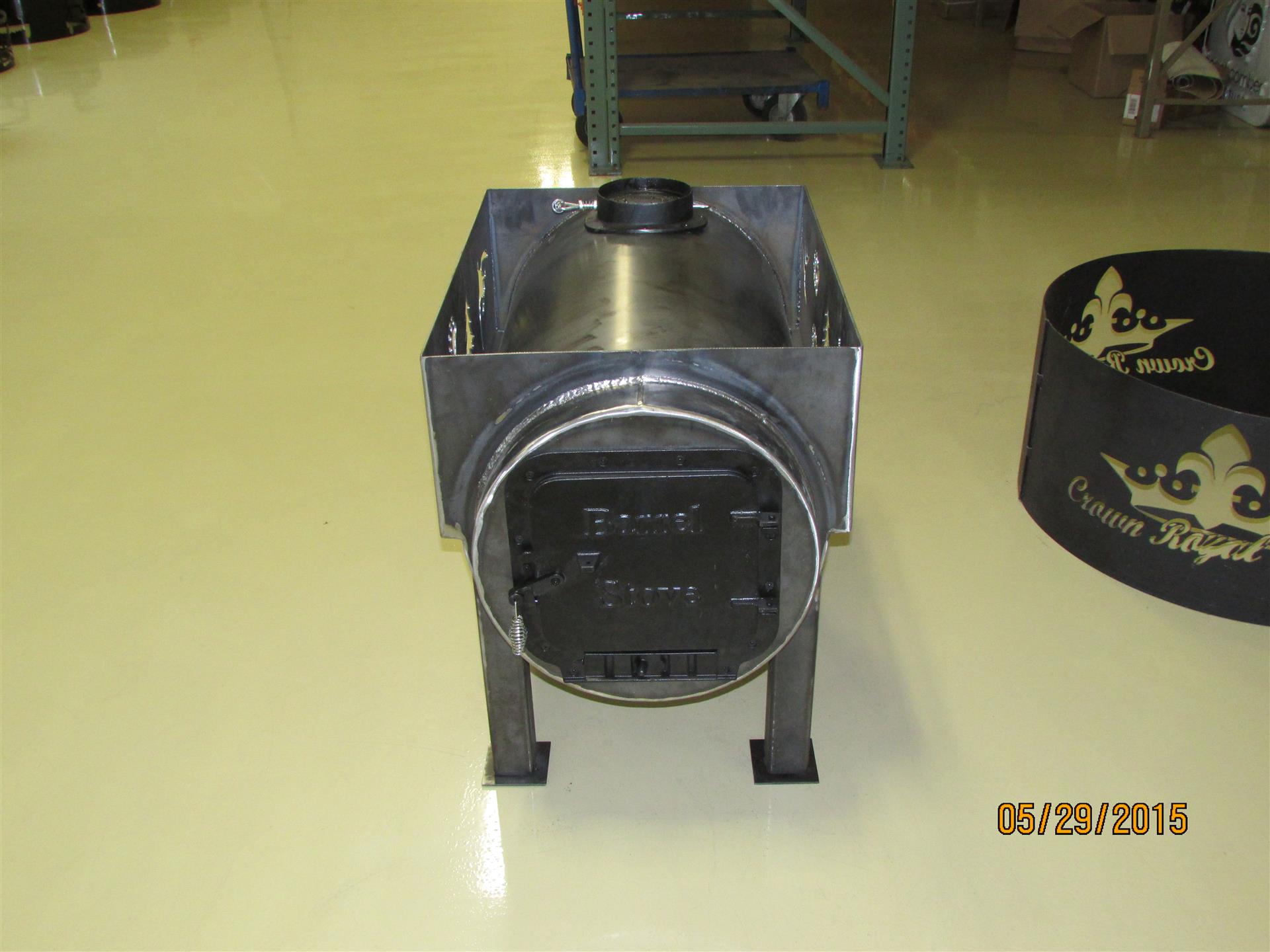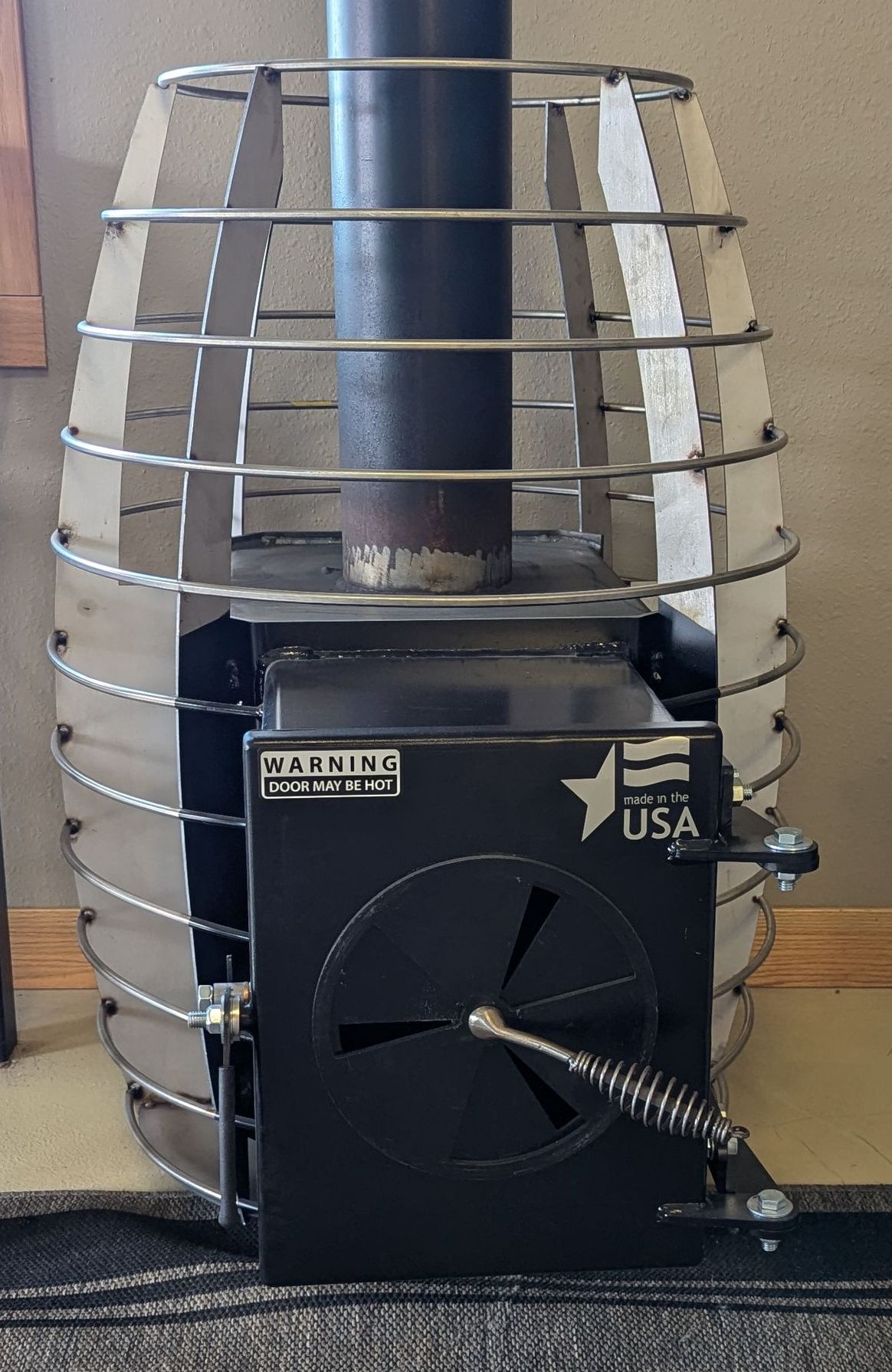 Custom built wood sauna stoves to customers specifications and design. Wood fired sauna stoves can be built with basket on top to hold rocks, which heat up and store heat that can be released after the fire has burned down.